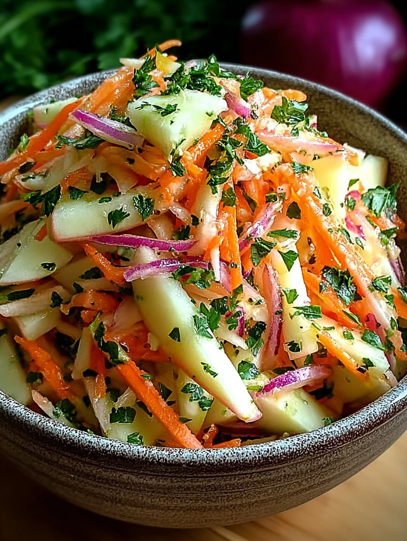 Frischer Kohlrabi-Karotten-Apfel-Salat