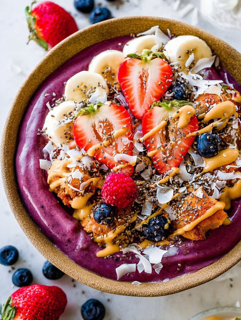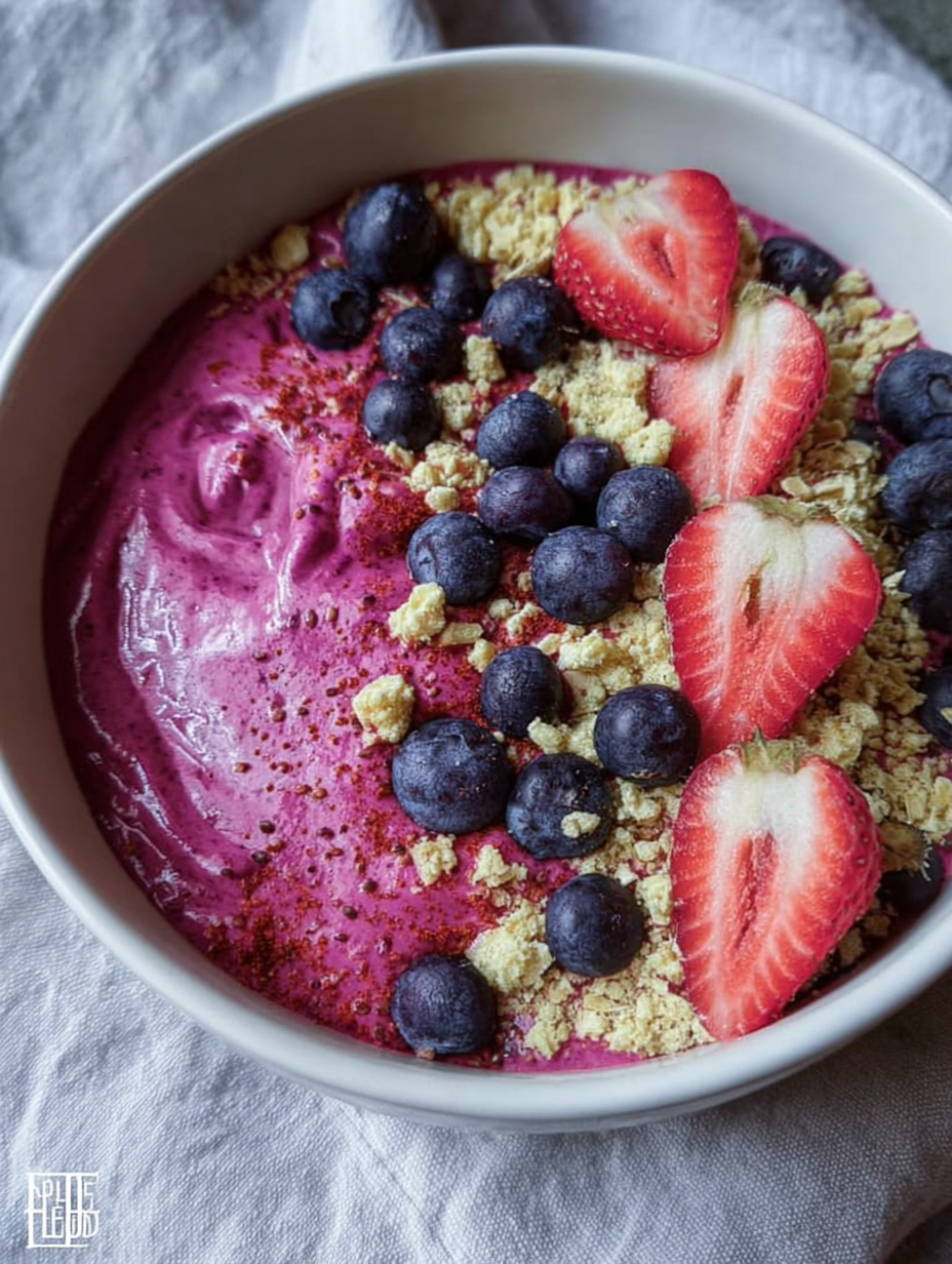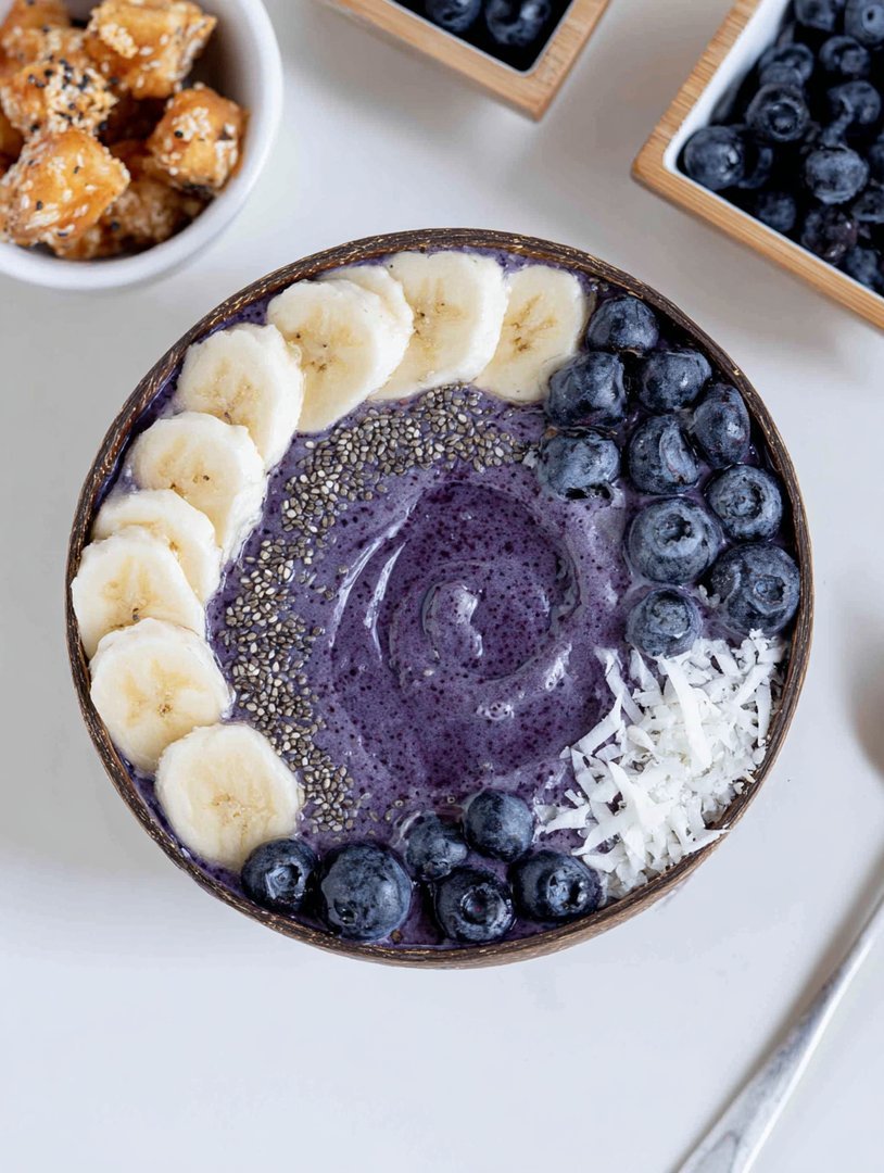 Frühstücksbowl mit Blaualkoholfreien Beeren und Chia-Pudding