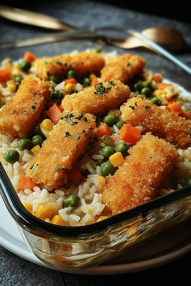 Fischstäbchen-Auflauf mit Reis und Gemüse – allein der Name klingt schon nach einem Gericht, das Kindheitserinnerungen weckt und gleichzeitig ein Lächeln ins Gesicht zaubert. Stell dir vor: knusprige Fischstäbchen, eingebettet in fluffigen Reis und frisches Gemüse, alles überbacken mit einer goldbraunen Käseschicht.