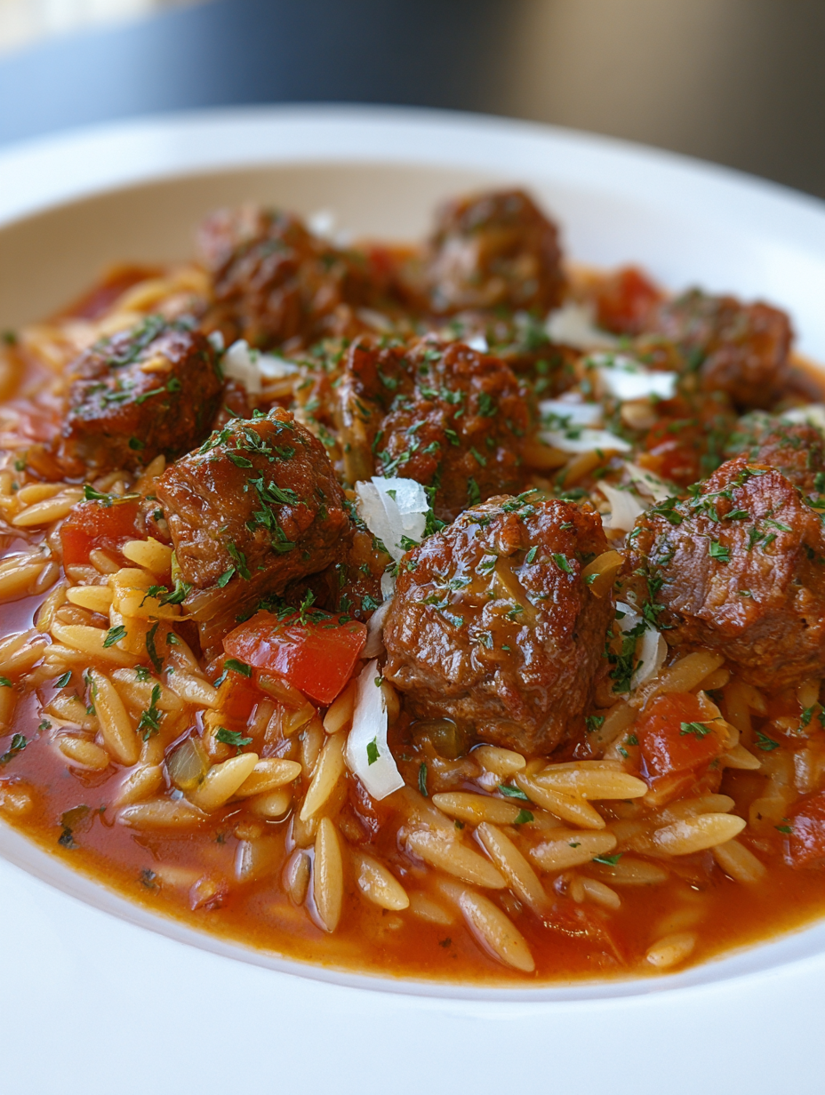 - Die winzigen Kritharaki-Nudeln saugen die reichhaltige Sauce perfekt auf und sorgen für eine unwiderstehlich cremige Textur.