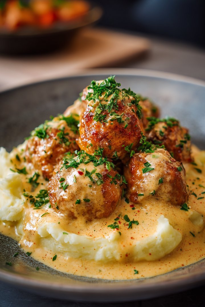 - Serviere die Hackbällchen mit einem frischen Salat, um einen schönen Kontrast zur cremigen Sauce zu schaffen.