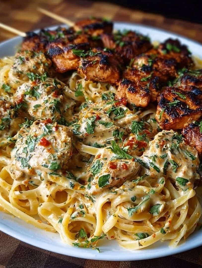 Als ich dieses Gericht zum ersten Mal kreierte, war ich auf der Suche nach einem Gegenpol zum oft faden Feierabendessen. Ich brauchte Würze, aber auch Trost. Und was ist tröstlicher als eine riesige Portion Pasta, die in einer Soße ertrinkt, die so reichhaltig ist, dass man sie fast verbieten müsste? Die Geheimwaffe liegt in der Balance: Das kräftig gewürzte, saftige Hähnchen – mariniert in einer ehrfurchtgebietenden Cajun-Mischung – trifft auf eine Knoblauch-Parmesan-Sauce, die so seidig ist, dass man sie am liebsten löffeln würde.
