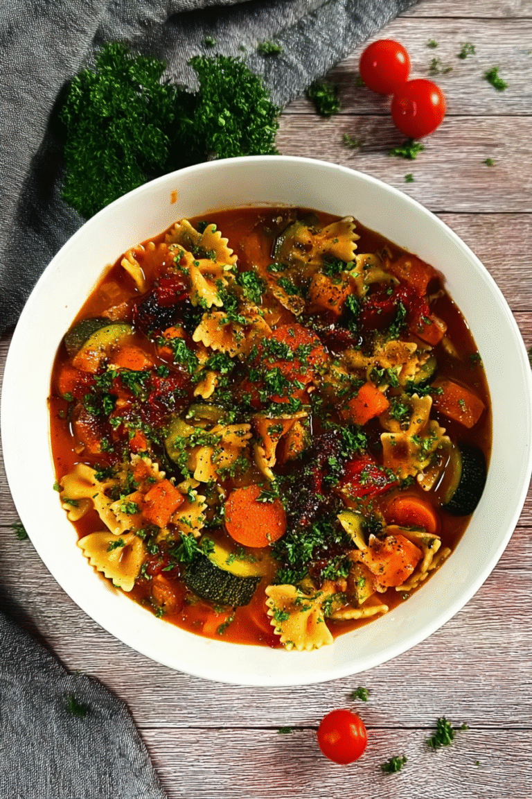 Dieser Eintopf ist mehr als nur eine Mahlzeit; er ist eine Umarmung für die Seele, die perfekte Begleitung für kalte Tage und ein Beweis dafür, dass einfache Zutaten Großartiges bewirken können. Die Italienische Minestrone – ein einfaches Rezept, das jeder lieben wird!