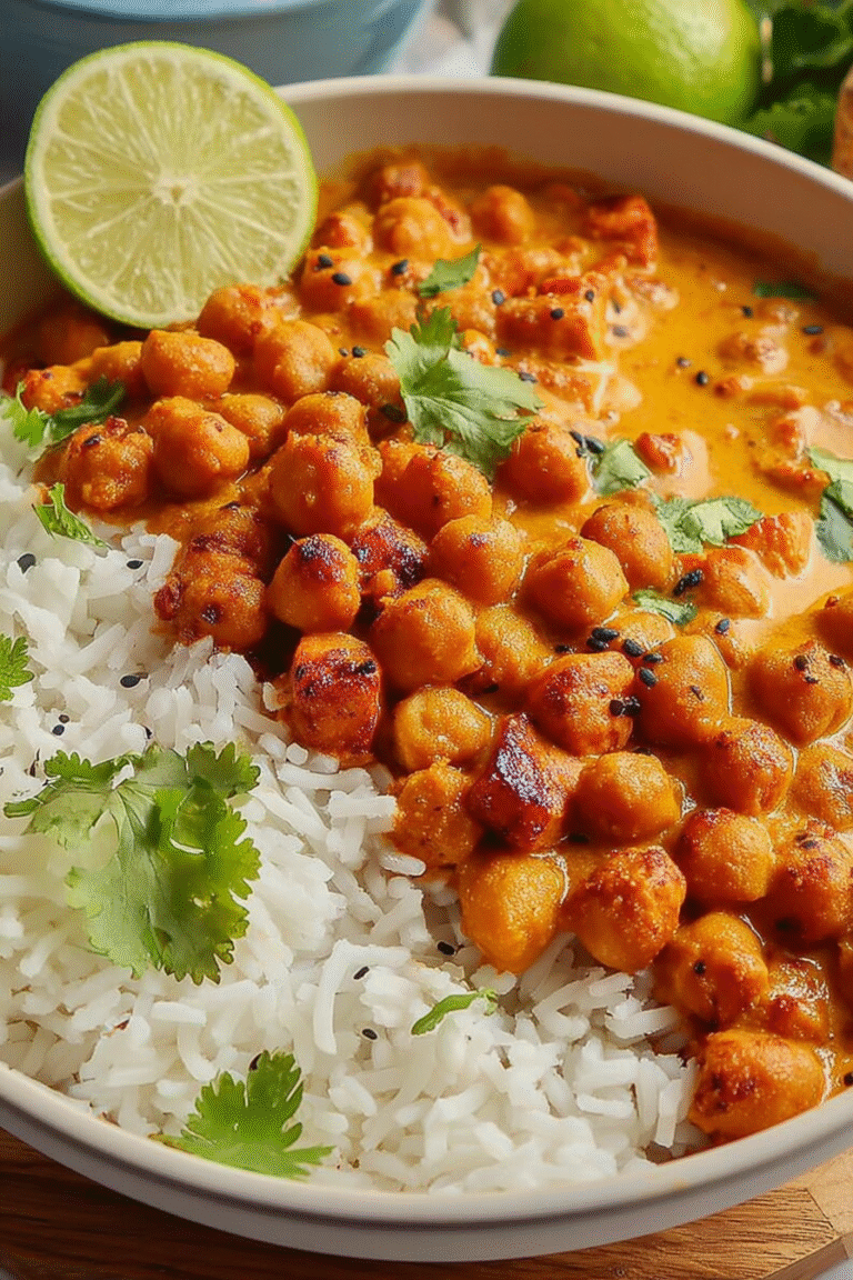 The best way to conquer this **Kichererbsen Curry – schnell & einfach** is by planning! Sauté the onions and spices first to build a flavorful base. Then, add the tomatoes and chickpeas, allowing them to simmer while you prepare the rice. This ensures everything finishes simultaneously for a perfect meal.