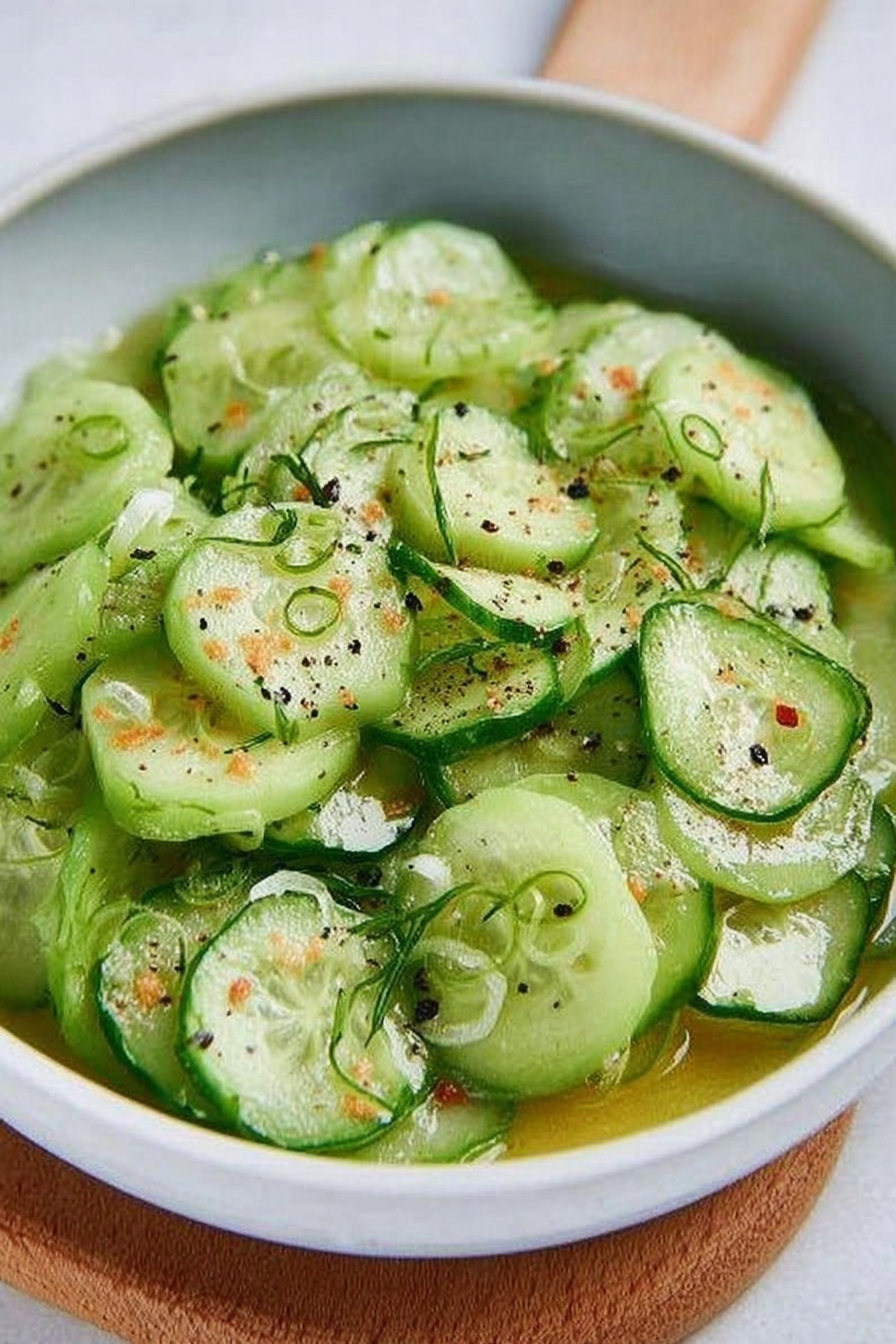 Omas Gurkensalat Rezept mit Essig und Öl ist mehr als nur ein Salat – er ist ein Stück Kindheit, ein Hauch von Sommer und ein Lächeln auf dem Teller. Mit wenigen Zutaten und etwas Liebe zubereitet, bringt er Erinnerungen zurück und zaubert neue. Ob als Beilage oder als erfrischender Snack, dieser Salat ist immer eine gute Idee. Also, schnapp dir eine Gurke, etwas Essig und Öl und lass dich von Omas Rezept verzaubern!