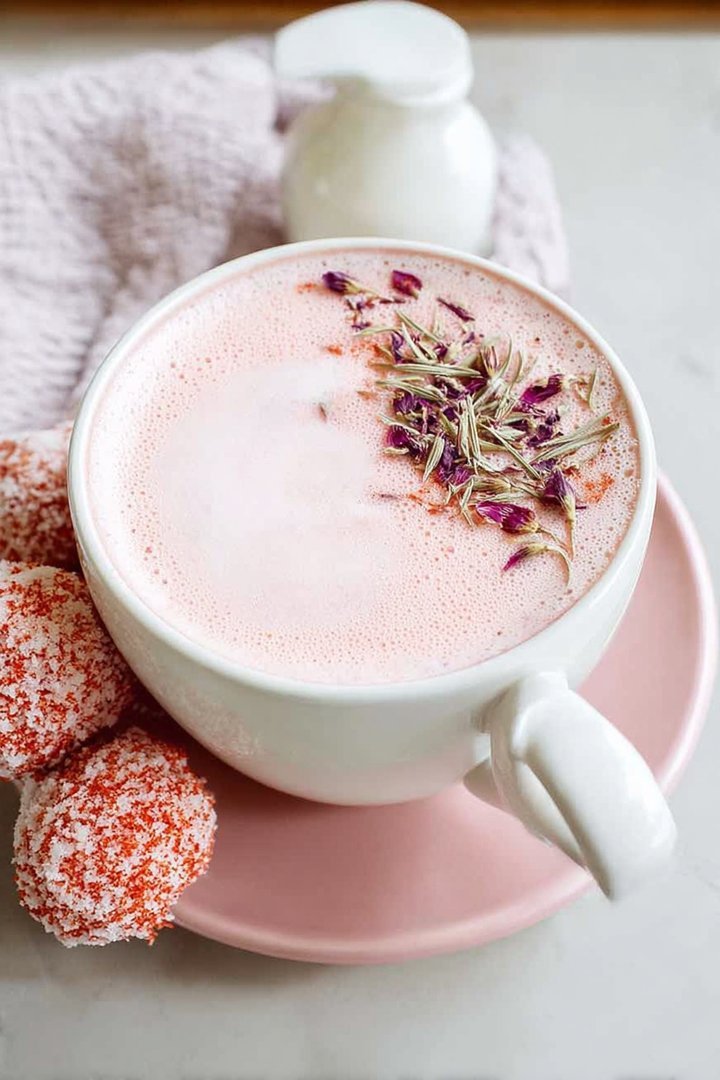 Delicious pink latte recipe with detailed instructions and nutritional information.
