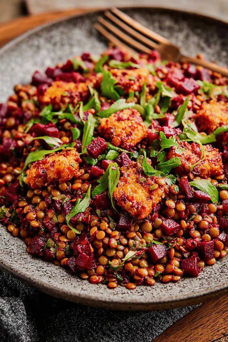 - **Mit Käse:** Feta, Ziegenkäse oder Halloumi passen hervorragend zu Rote Bete und Linsen.