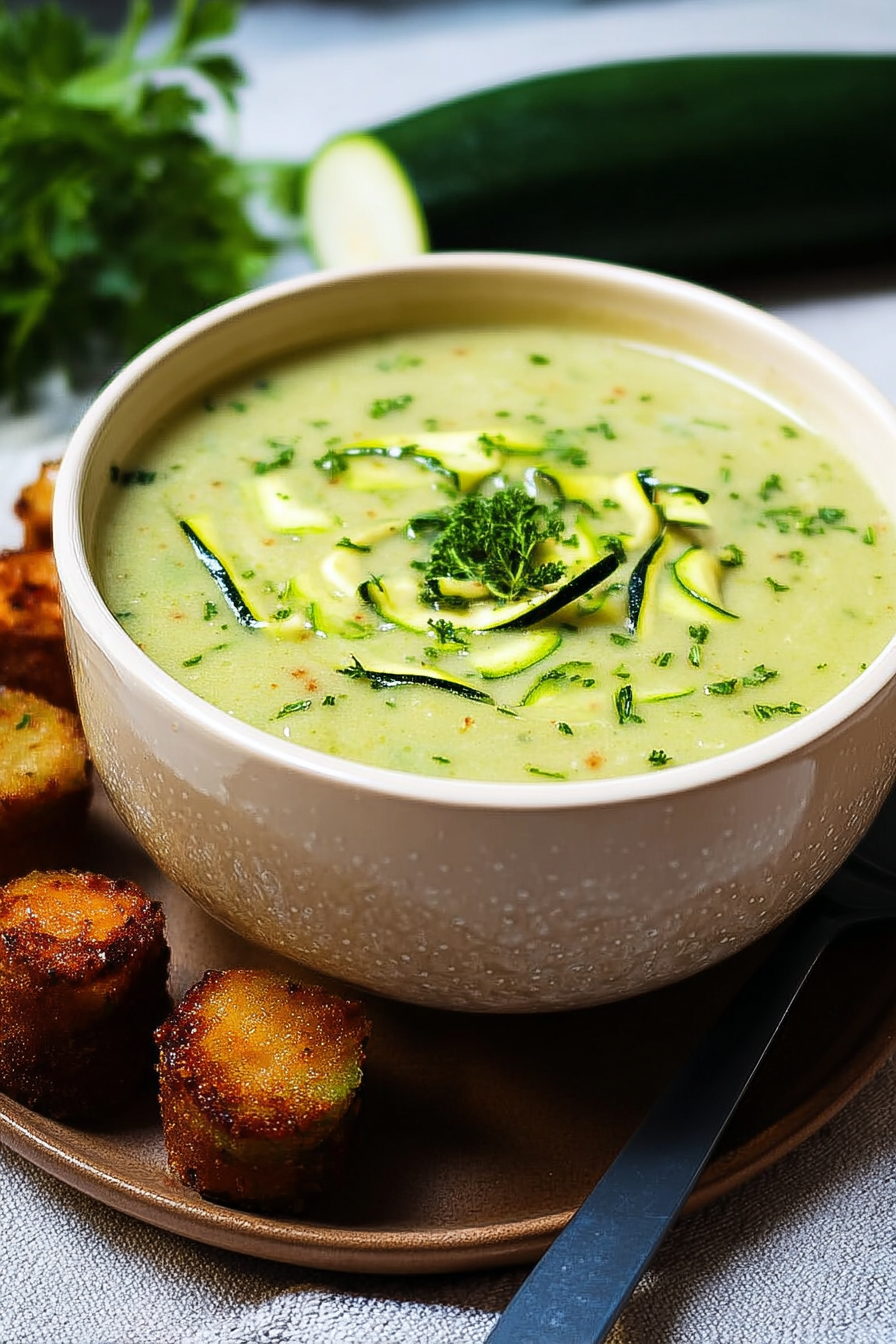 - Der milde Geschmack von Zucchini, verfeinert mit frischen Kräutern, macht diese Suppe unwiderstehlich.